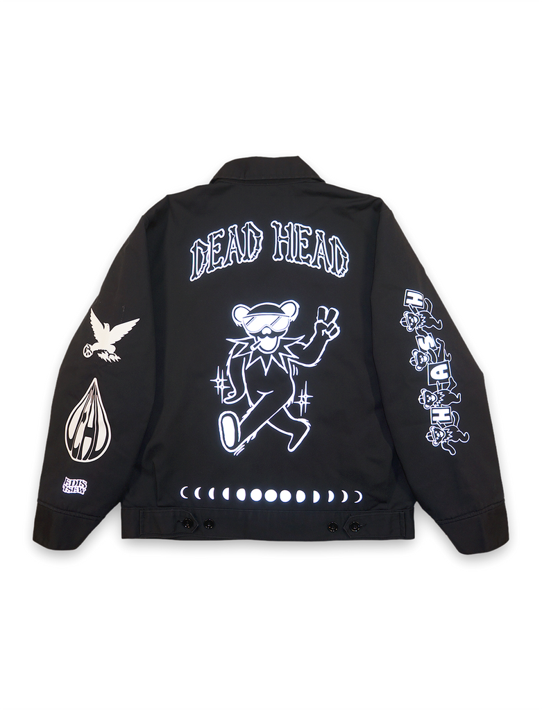 1 OF 1 UPCYCLED "EDISTSEW X ALL MY HATS ARE DEAD" REFLECTIVE DICKIES WORK JACKET BLACK